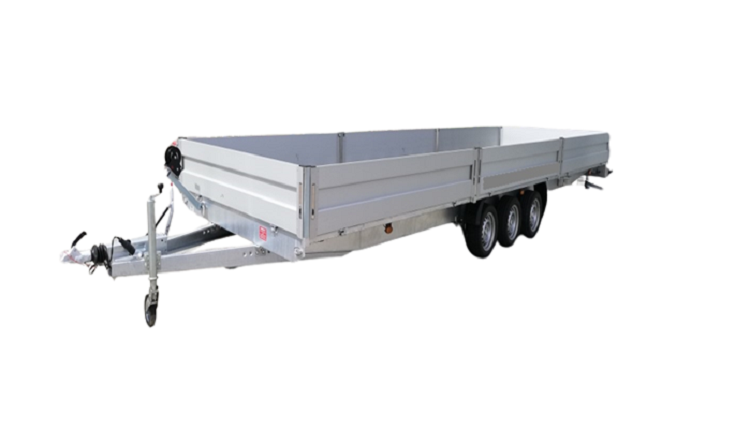 REMORQUE PLATEAU-RIDELLES BOSS 6.0 – 3 ESSIEUX AVEC RAMPES + BEQUILLES